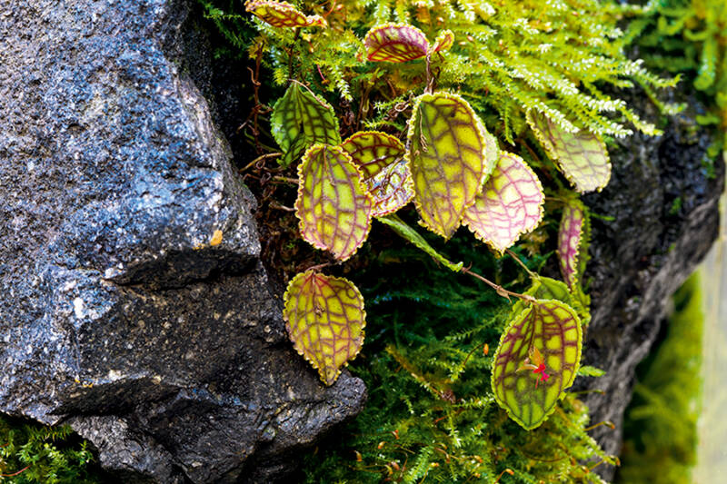 Jungleplanten, die van nature groeien in tropische nevelwouden, glinsteren in blauwe of rode tinten wanneer de bladeren voldoende worden bevochtigd en verlicht door de Paluda Light. Briljante bladeren zijn het teken van een gezonde plant.