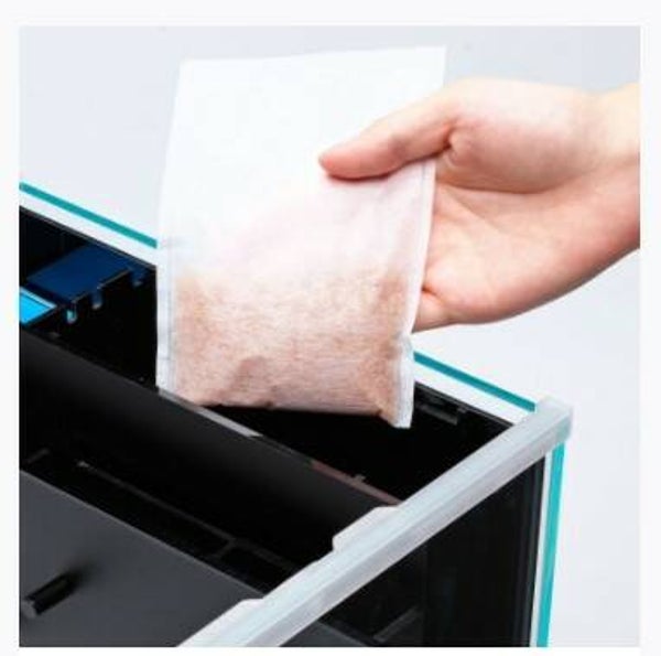 DOOA Paluda Clean PC is een verwisselbaar absorptiepakket voor het verwijderen van opgelost calcium en magnesium uit het water met de functie van kationenuitwisselingshars, en voor het voorkomen van de witte vlekken (wateraanslag). Een verpakking van het product moet worden toegevoegd aan Mistflow Box (watertank) van de DOOA System Paluda-serie en System Terra 30. Het kan ook worden gebruikt met System Aqua 30 voor het verminderen van de hardheid van water. En water dat met dit product is behandeld in een aparte container kan worden gebruikt om te spuiten. Gebruik Paluda Clean PC en onderhoud Paludarium prachtig.