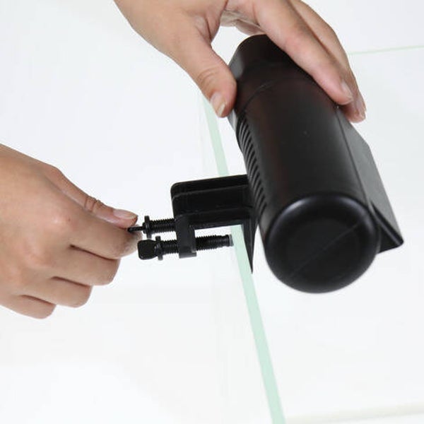 - Eenvoudige montage op de aquariumrand. Glasdikte: max. 2,4 cm. Luchtstroom flexibel te richten. Behuizing op de houder 360° draaibaar. Verbinden met de voeding, stekker in het stopcontact - koeler actief
