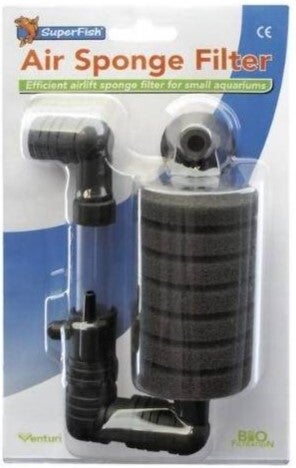 De superfish air sponge filter is een eenvoudige maar zeer effectief biologisch filter voor kleine aquaria. U sluit het filter aan op een luchtpompje. De nuttige bacteriën hechten zich aan de spons en zorgen voor een biologisch filtratie van het aquariumwater. Het uitstromende water wordt tevens met zuurstof verrijkt.